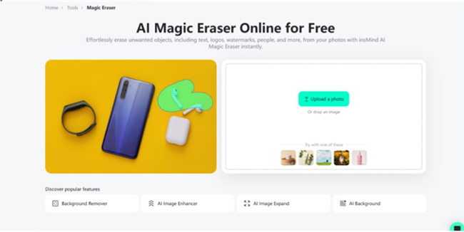 Navigate to the Magic Eraser tool of insMind. This magic eraser operates online, directly through your browser; you do not have to download it.