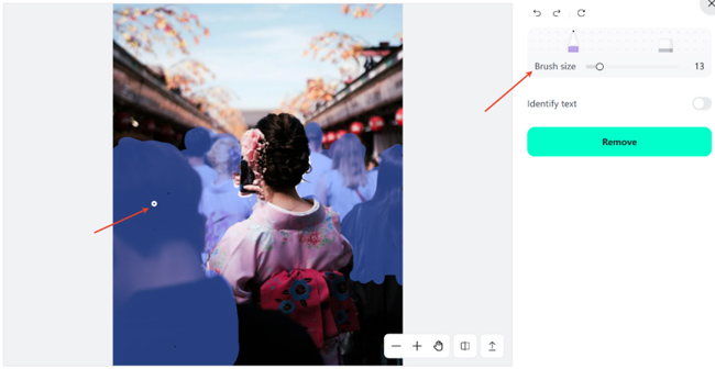 To achieve this, use the adjustable brush to highlight the area or object that you wish to erase. This helps achieve accurate coverage and the desired results.