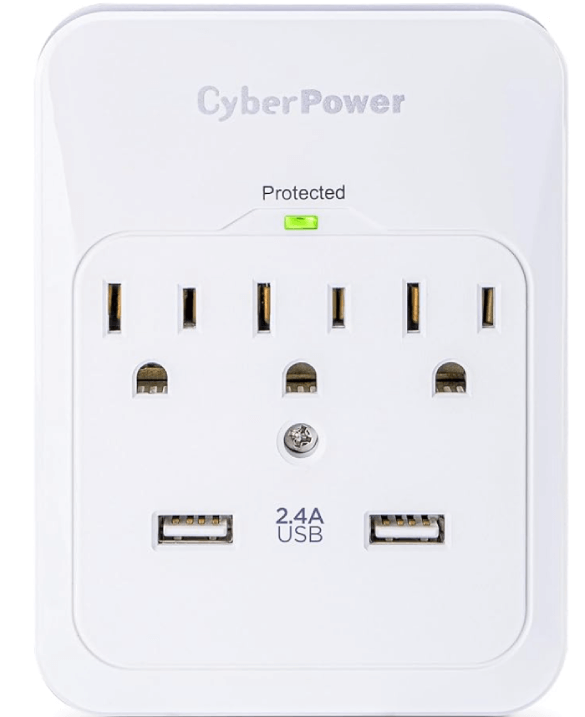 This awesome device has three surge-protected outlets and two  2.4 amp USB charging ports that you can use to keep your essential devices powered up and charged while also helping protect them from power surges, which is very important in some parts of the country.